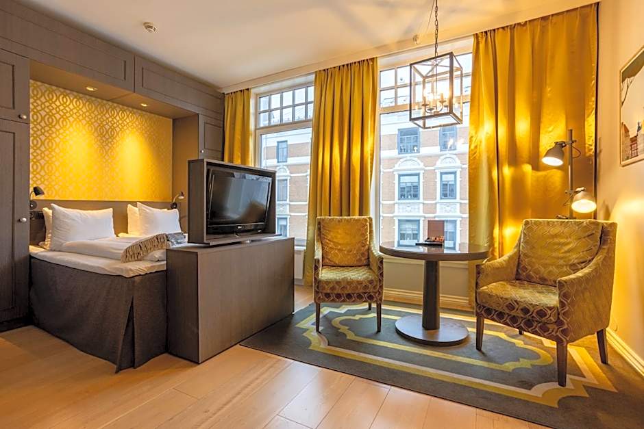Studio Double is 323 square feet and includes a king-size bed 150-183 width plus extra beds on demand, desk, and hairdryer.